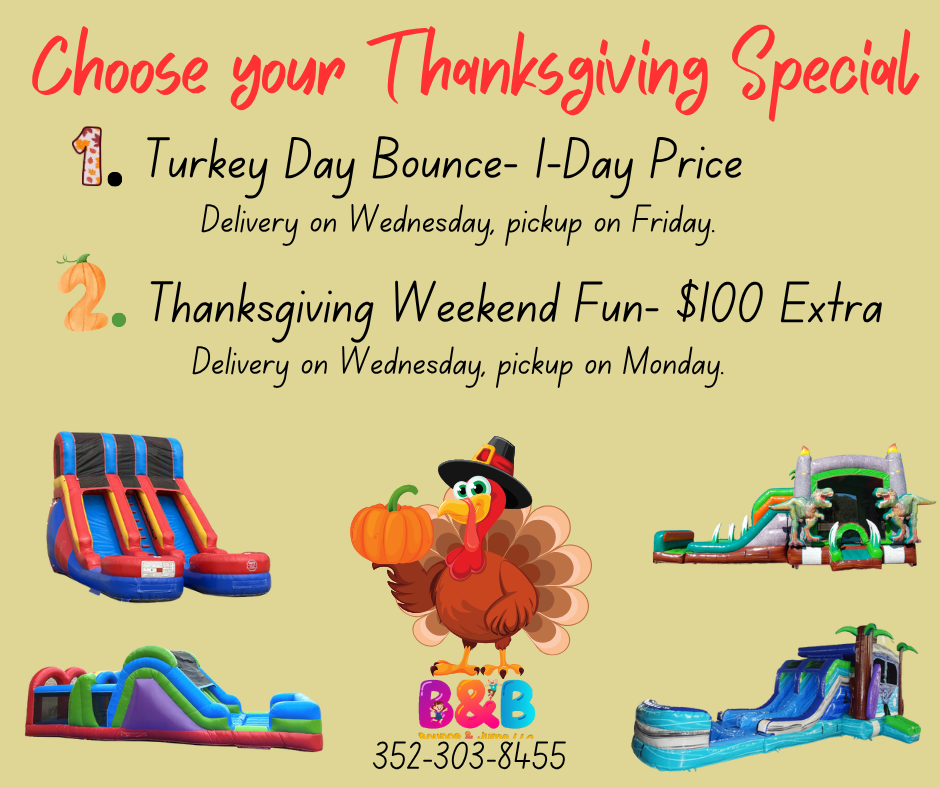 Call/Text at 352-303-8455 to plan some fun and unforgettable moments this Thanksgiving season!