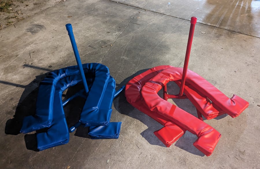 Our Giant Horseshoes set is made of durable materials, ensuring long-lasting fun for your guests. The set includes four giant horseshoes and two stands, all crafted for safety and ease of play. Whether you're hosting a family reunion, company picnic, or community event, our Giant Horseshoes game is sure to be a hit.