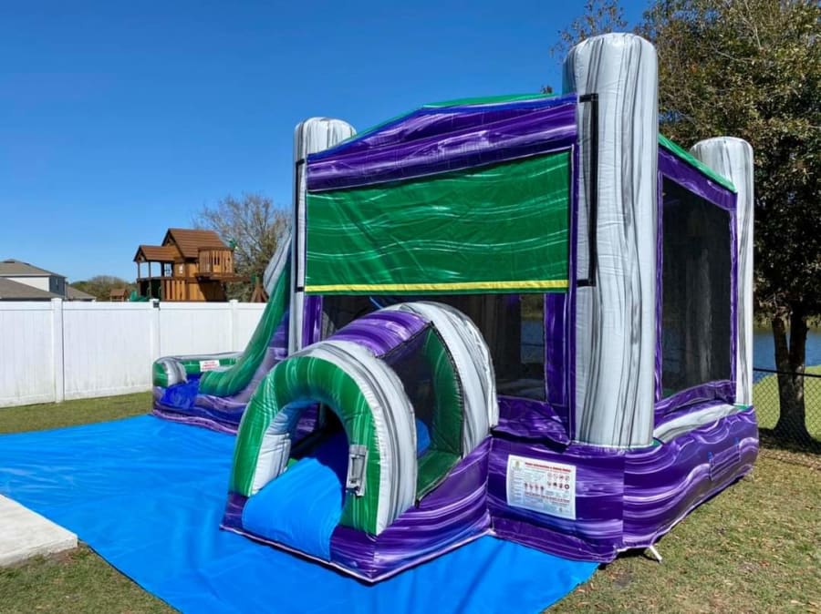 Purple/Green Combo - Wide Single Lane Wet/Dry Bounce House Combo