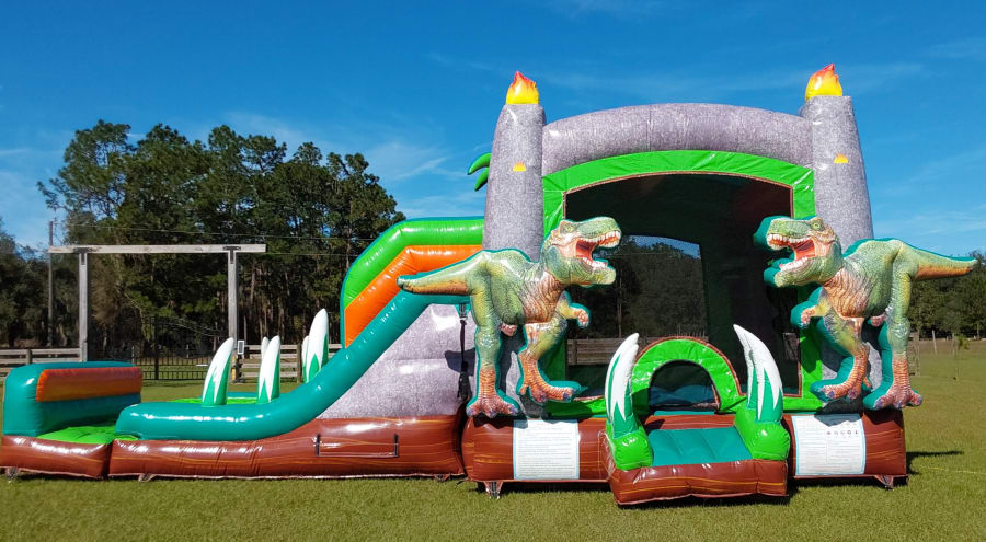 Dinosaur Combo: Double Lane Wet or Dry Dinosaur Bounce House Combo