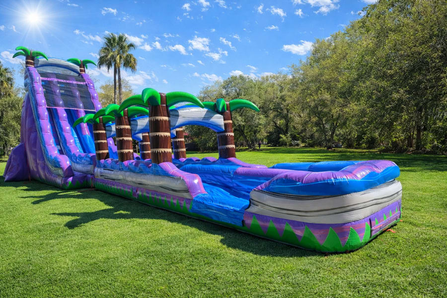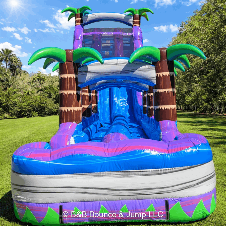 At B&B Bounce & Jump LLC, we are committed to providing the highest quality entertainment options for our customers in Sumter County Florida and Surrounding Areas. Our Purple Crush Double Lane Slide is just one of the many exciting attractions we offer. Check out our options for more water slides Water Slides.