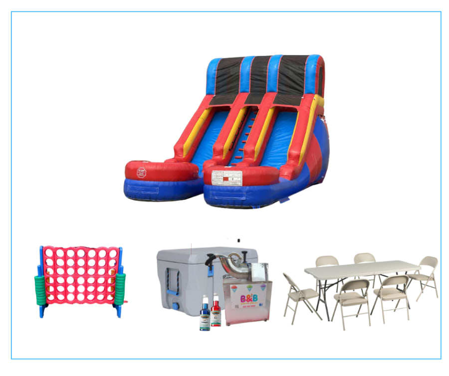 Make your event a splash with our Red & Blue Double Lane Slide Package!