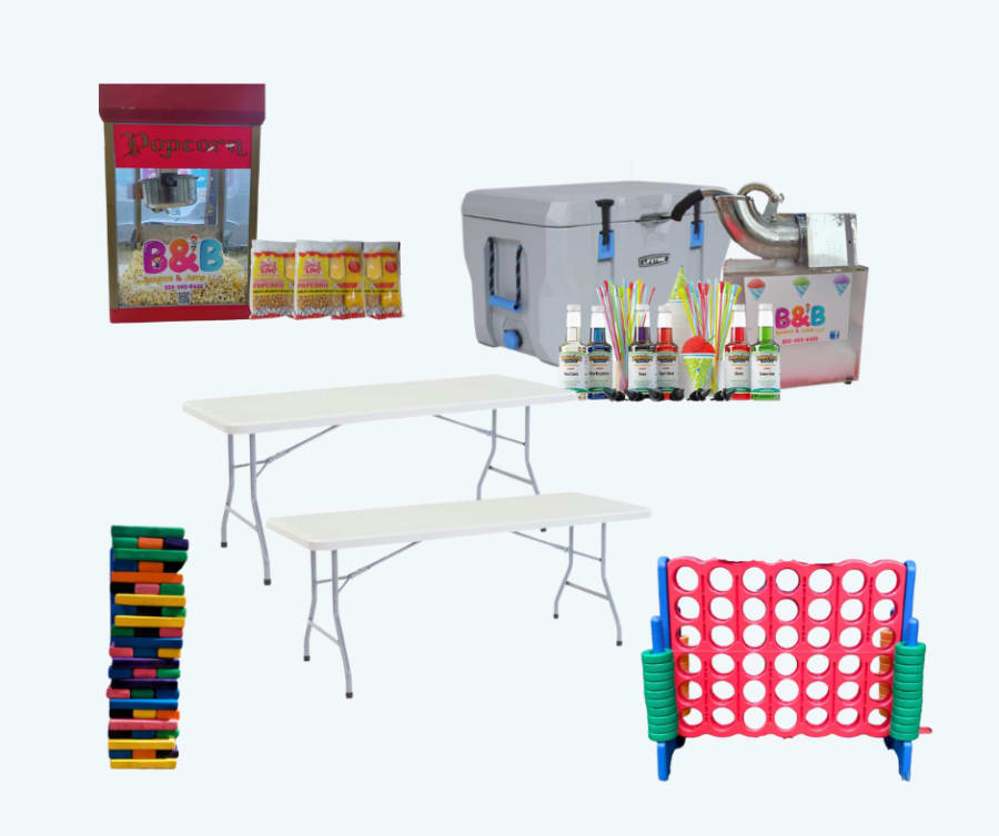Make your event a hit with the Sweet & Salty Fun package - the perfect combination of icy treats, savory snacks, and exciting games, available for delivery in Sumter County Florida and Surrounding Areas. Book now for an unforgettable experience!
